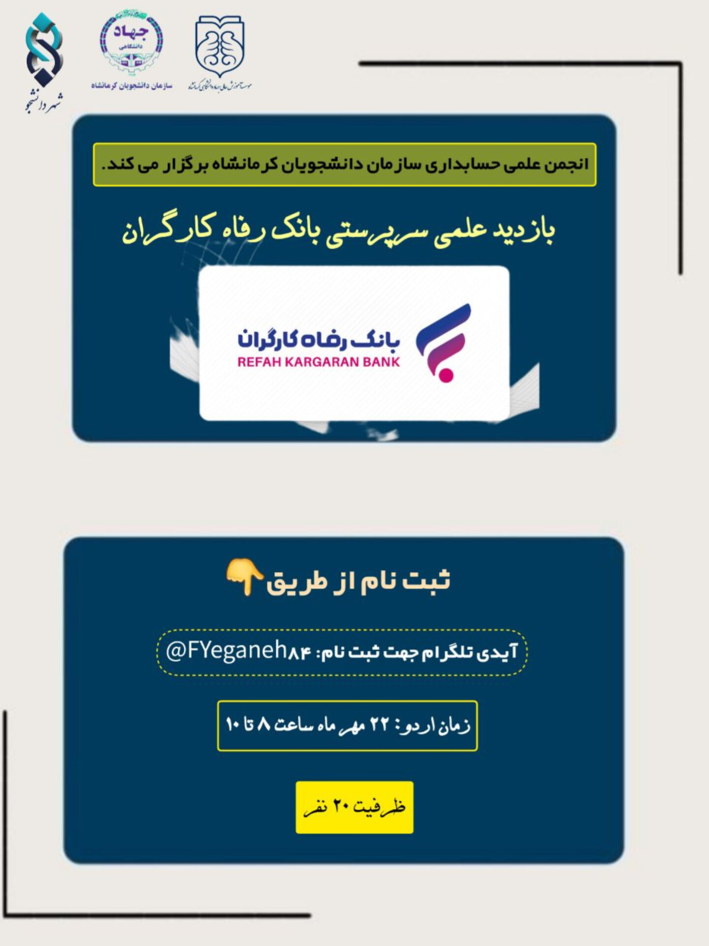 ✅ انجمن علمی حسابداری سازمان دانشجویان جهاددانشگاهی برگزار می کند.