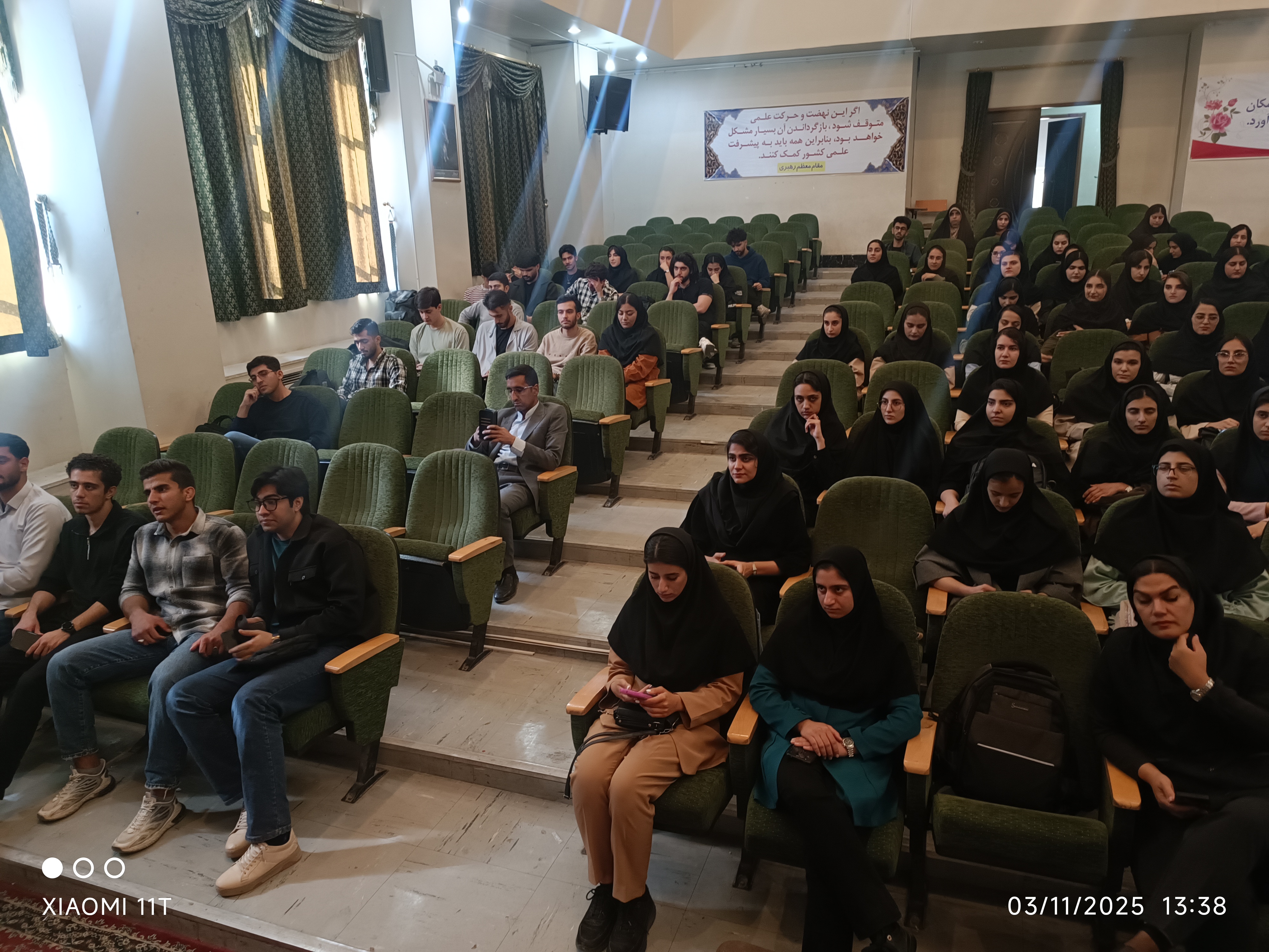 نشست آموزشی بازخوانی فعالیتهای دانشجویی فرهنگی با هدف ایجاد انگیزه روز دوشنبه ۱۲ آبان ۱۴۰۴ ساعت ۱۳ الی ۱۵ در دانشگاه لرستان،دانشکده ادبیات، سالن شهید شکوهی با حضور دانشجویان برگزار شد.