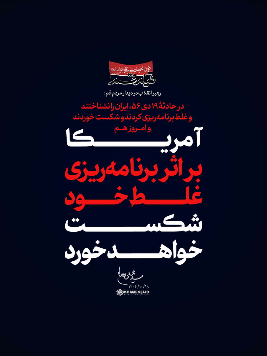 ایشان در تشریح واقعیات و حقایق تاریخی، با اشاره به استمرار خطاهای عمیق محاسباتی آمریکا در قبال ملت ایران و نظام جمهوری اسلامی تأکید کردند: همین خطاها آمریکا را آن روز به شکست کشاند و امروز هم چیزی جز شکست نصیب آن نخواهد کرد.