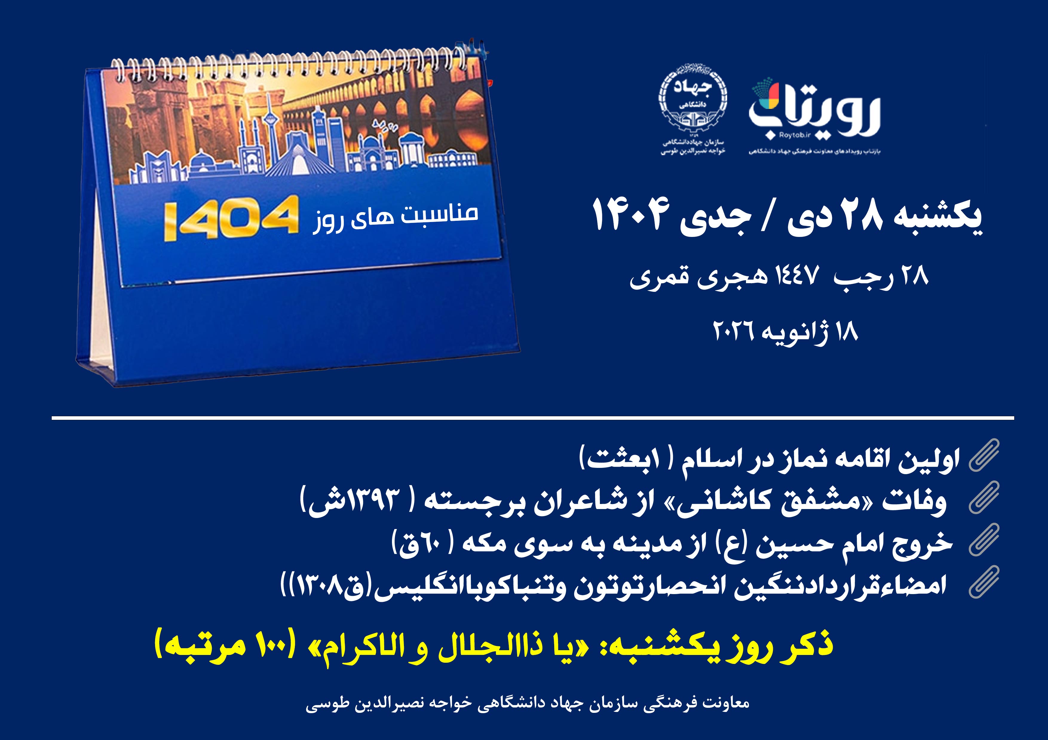 یکشنبه, 28 دی,1404