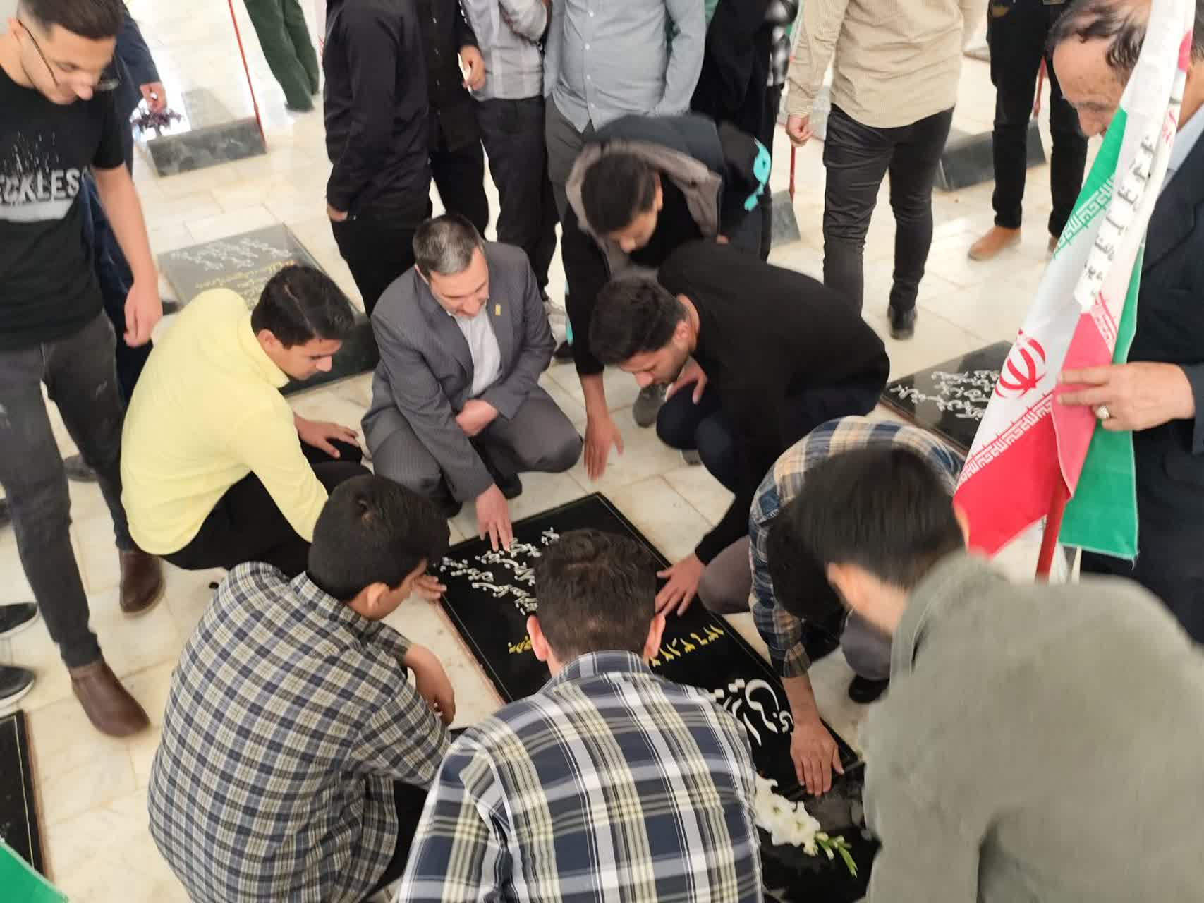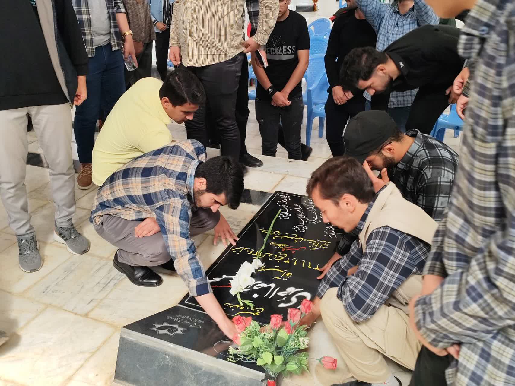شعبه سازمان دانشجویان جهاددانشگاهی واحد چهارمحال و بختیاری با همراهی اعضای فعال کانون تربیت دانشگاه فرهنگیان استان، پس از گفت و گو با افراد مطلع و جمع آوری مستندات جهت شناسایی و بررسی زندگینامه این شهید بزرگوار به منظور ادای احترام، مراسم عطرافشانی مزار شهید و همرزمانش را اجرا کرد.
