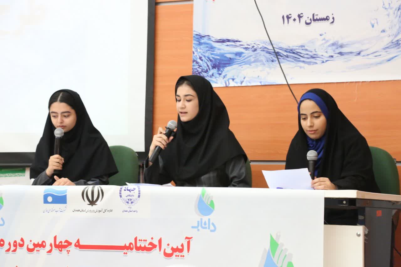 آیین اختتامیه چهارمین دوره و افتتاحیه پنجمین دوره طرح دانشآموزی نجات آب (داناب) با هدف ترویج فرهنگ مصرف بهینه آب و نقشآفرینی دانشآموزان در مدیریت منابع آبی، همزمان با ایامالله دهه فجر در استان همدان برگزار شد.