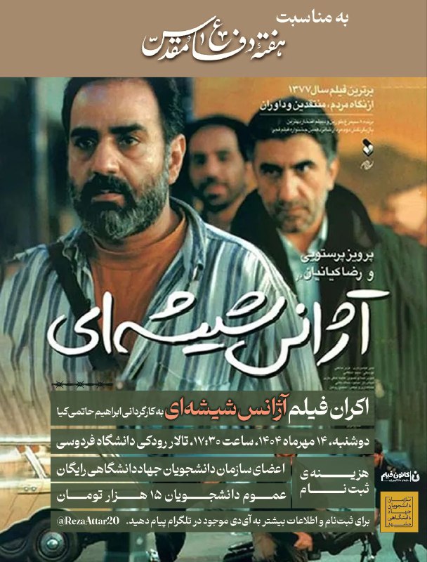 اکران فیلم سینمایی آژانس شیشهای ✻ کانون فیلم سازمان دانشجویان جهاد دانشگاهی خراسان رضوی برگزار میکند!