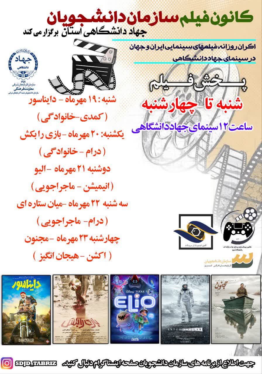🎬کانون فیلم سازمان دانشجوان جهاددانشگاهی استان آذربایجان شرقی برگزار می کند.