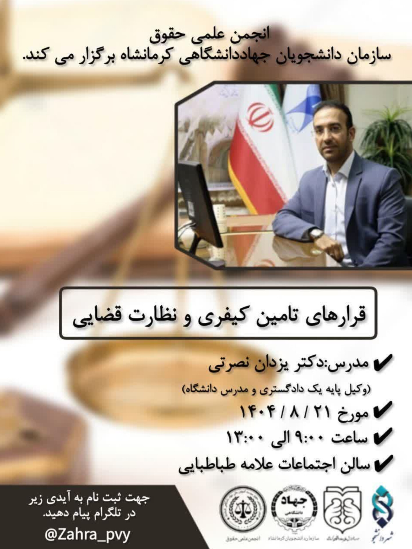 🔹🔸 انجمن علمی حقوق سازمان دانشجویان جهاددانشگاهی کرمانشاه برگزار می کند.