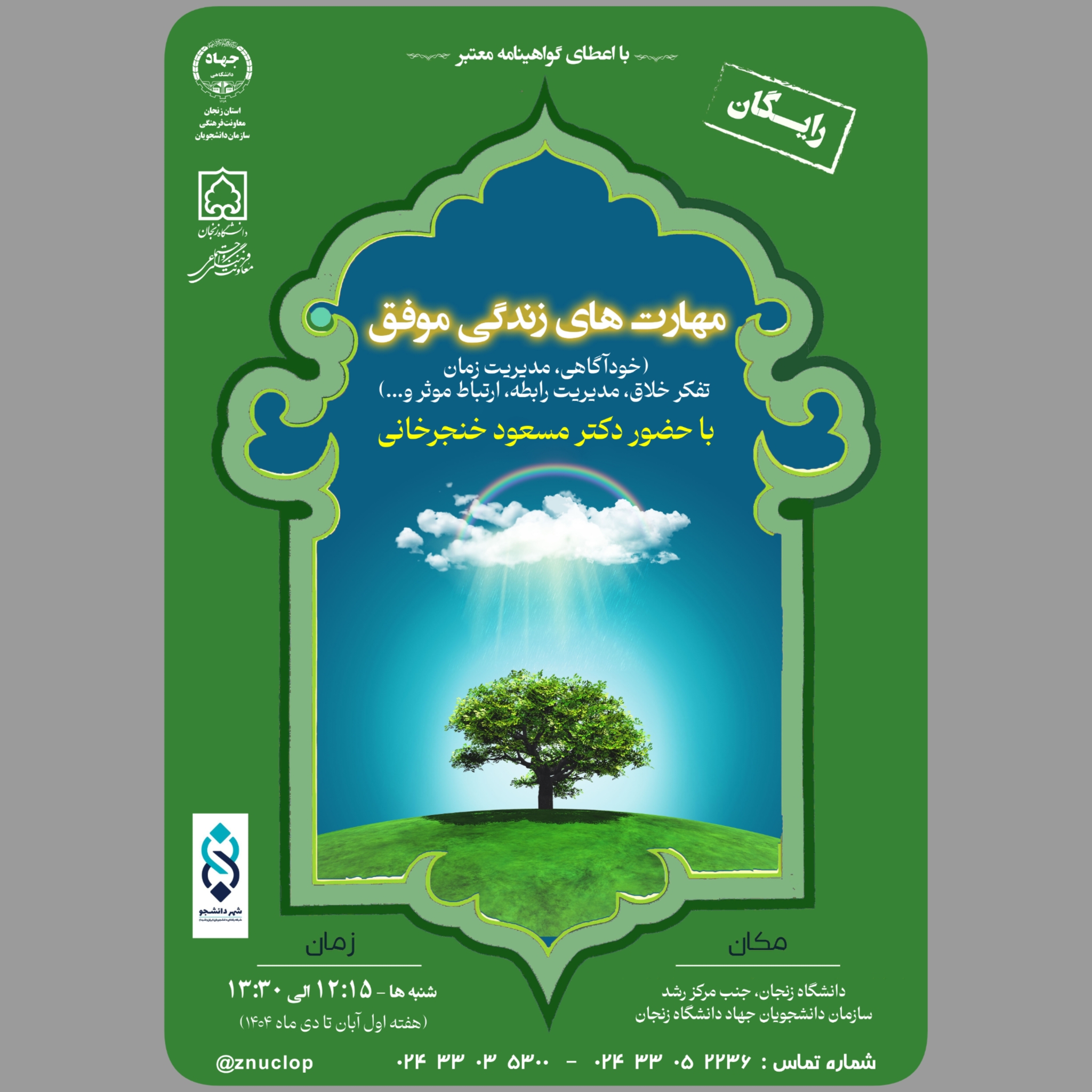 مکان: دانشگاه زنجان، جنب مرکز رشد، سازمان دانشجویان جهاد دانشگاهی زنجان، تالار گفتگو