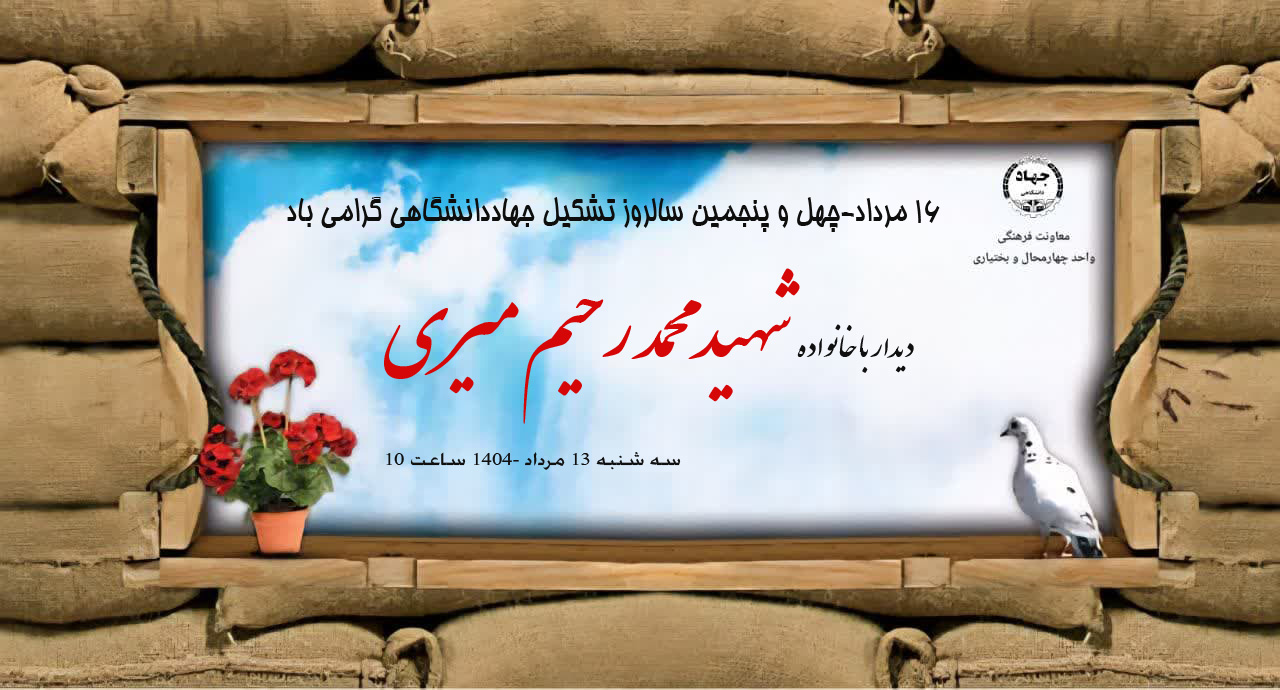همزمان با بزرگداشت چهل و پنجمین سالگرد تشکیل جهاددانشگاهی، رئیس و همکاران جهاددانشگاهی واحد چهارمحال و بختیاری با خانواده شهید میری دیدار کردند.