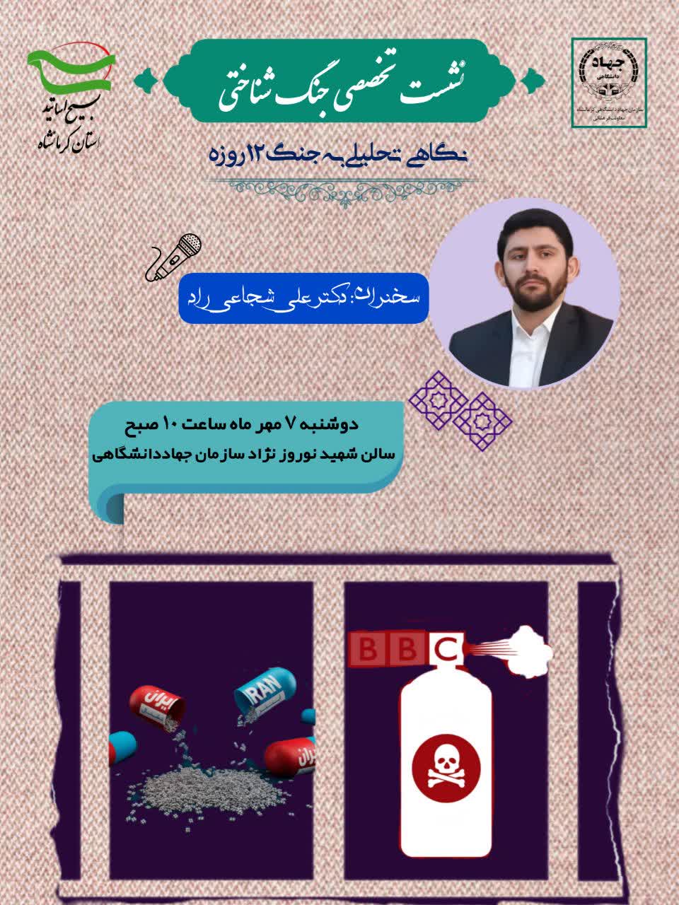🔹نشست تخصصی«جنگ شناختی» به همت معاونت فرهنگی سازمان جهاددانشگاهی استان کرمانشاه و با حضور جمعی از اساتید و دانشجویان برگزار شد