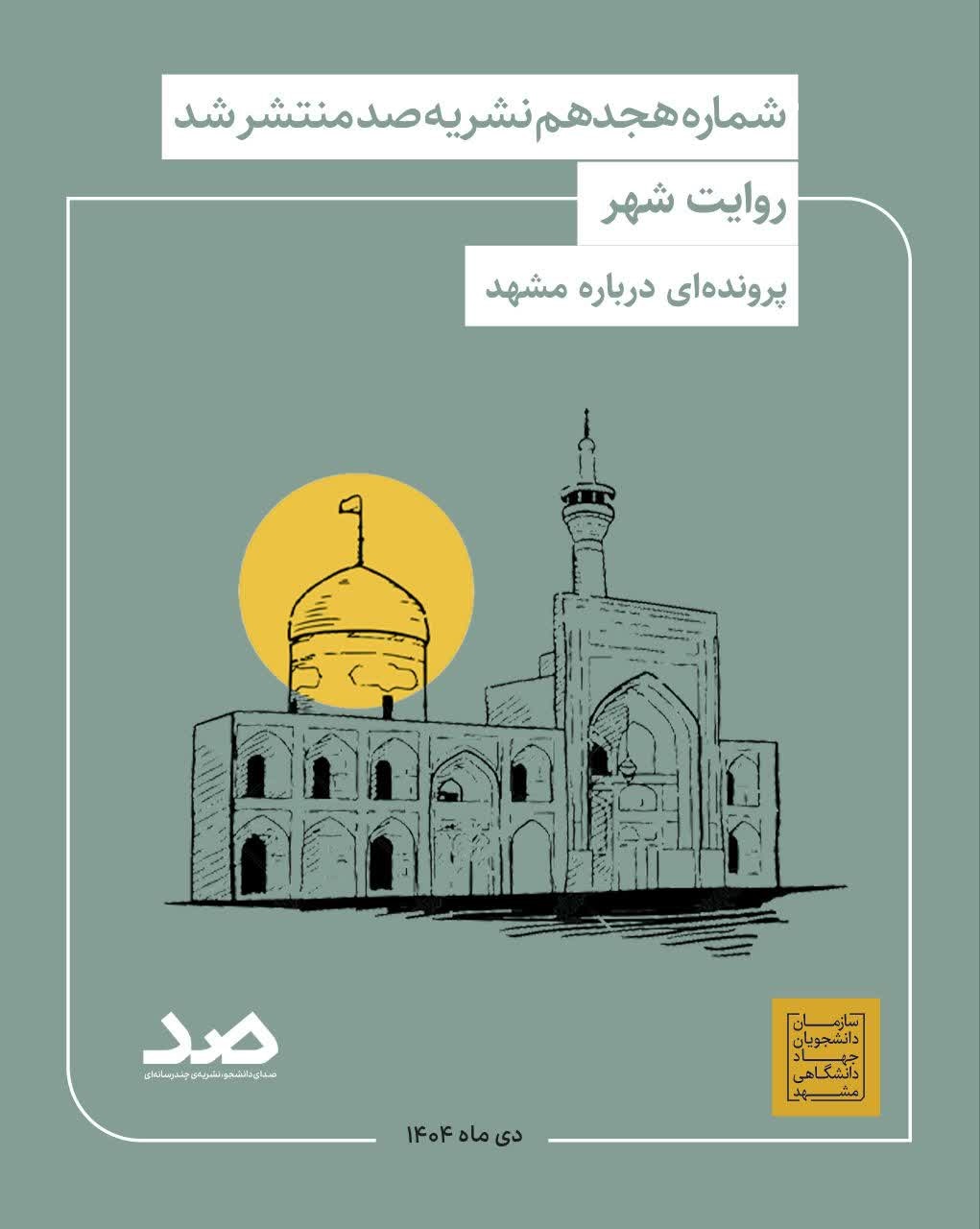نوزدهمین شماره از نشریه چندرسانهای صد با در نظر گرفتن اهمیت پیوند افراد با محل زندگی خود، تلاش کرده تا از طریق مرور روایتهایی از شهر که در طی این سالها به همت سازمان دانشجویان جهاد دانشگاهی خراسان رضوی بازگوشده، به عمیقتر شدن ارتباط افراد با شهرشان کمک کند. این شماره پروندهایست دربارهی شهر ما؛ مشهد. صد؛ صدای دانشجویان است و هدف از انتشار آن، ایجاد نوآوری و شکستن قالبهای قدیم نگارش و خوانش در نشریات دانشجوییست.
