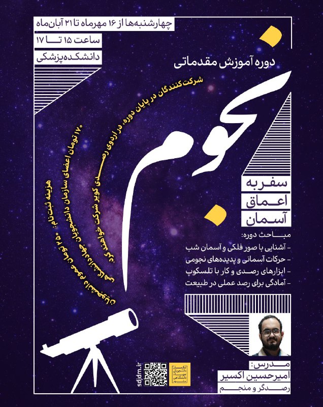 دفتر دانشکده پزشکی سازمان دانشجویان جهاد دانشگاهی برگزار میکند! دوره آموزش مقدماتی نجوم ویژه دانشجویان علوم پزشکی سرفصلهای دوره: