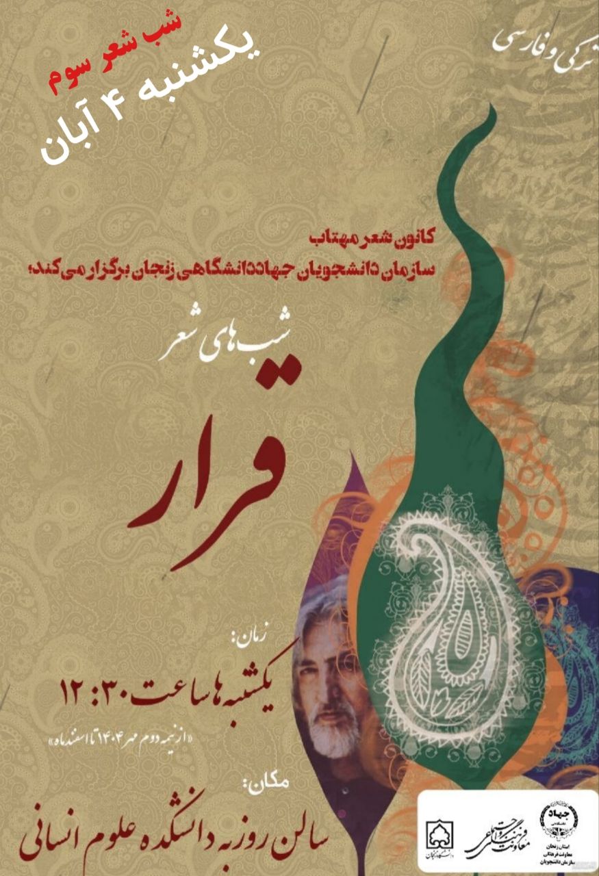 کانون شعر مهتاب سازمان دانشجویان جهاد دانشگاهی زنجان برگزار میکند؛