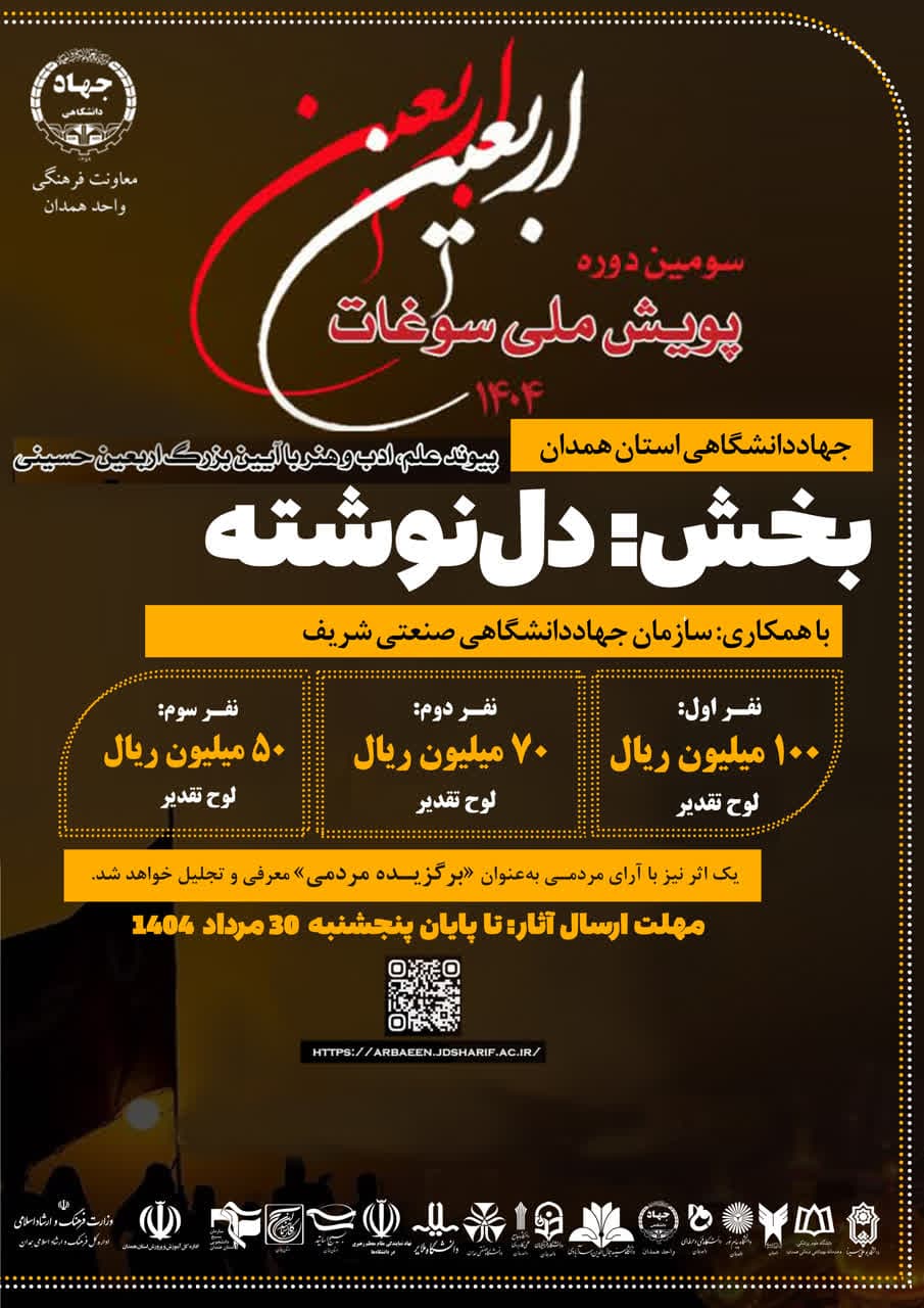 به گزارش روابط عمومی معاونت فرهنگی جهاددانشگاهی واحد همدان، اعظم شکوری اظهار کرد: این پویش توسط سازمان جهاددانشگاهی صنعتی شریف و با همکاری چند استان اجرا شد و مهلت ارسال آثار نیز با دو نوبت تمدید، در نهایت ۱۵ مهرماه پایان یافت و آثار دریافتی به مرحله داوری رسید.