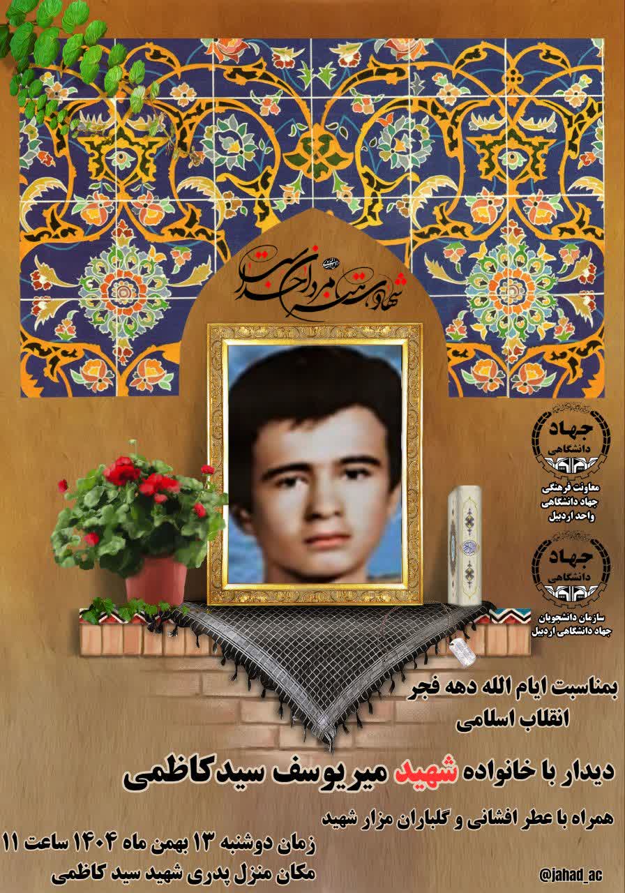 به مناسبت ایام پیروزی شکوهمند انقلاب اسلامی و دهه فجر معاونت فرهنگی جهاددانشگاهی استان اردبیل در جهت ارج نهادن به مقام شامخ شهدا رو زدوشنبه مورخه 13/12/1404 با خانواده شهید سید یوسف کاظمی به همراه کارکنان بنیاد شهید و امور ایثارگران و همکاران جهادگر دیدار و گفتگو و تجلیل به عمل آوردند. گفتنی است قبل از این دیدار اعضا و جهادگران با شهدای انقلاب اسلامی و دفاع مقدس تجدید بیعت کرده و مزار شهدا را عطرافشانی کردند.