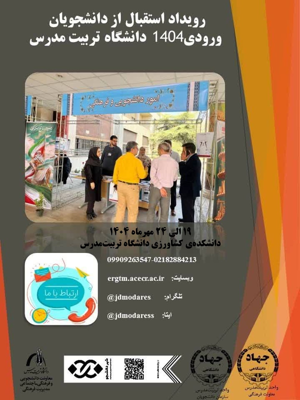 سازمان دانشجویان جهاد دانشگاهی شعبهی تربیتمدرس در نظر دارد برای بهرهمندی حداکثری از ظرفیتهای دانشجویی دانشگاه و تسهیل مشارکت دانشجویان در سازمان دانشجویان، میز خدمت و معرفی برای استقبال از دانشجوییان نوورود ترتیب دهد.