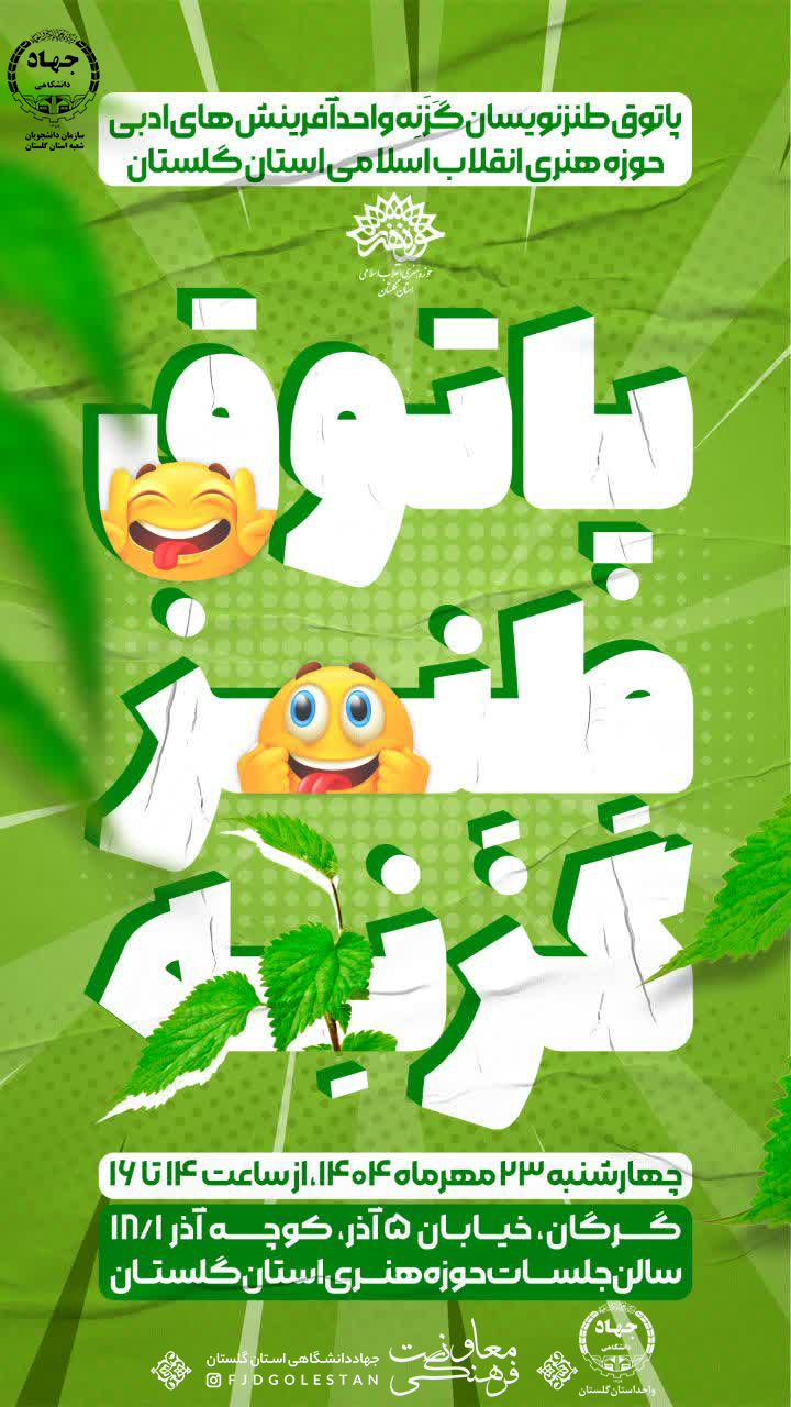 سازمان دانشجویان شعبه استان گلستان با همکاری کانون طنز گزنه حوزه هنری استان گلستان کارگاه اموزش طنزنویسی ویژه دانشجویان استان را برگزار خواهد کرد