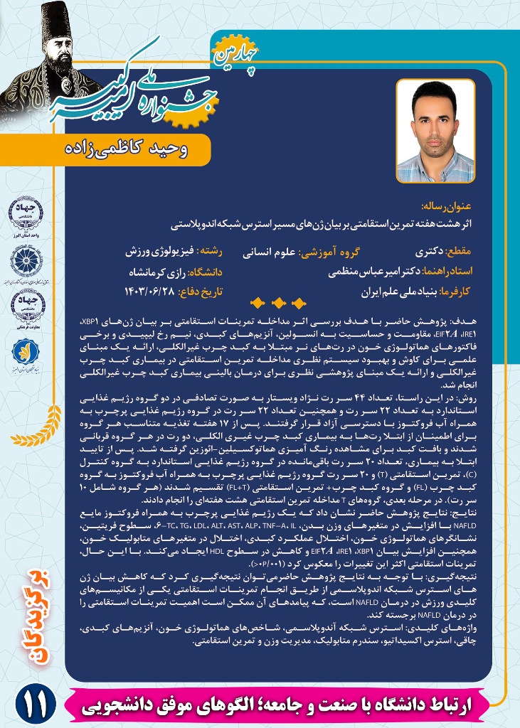 عنوان رساله: اثر هشت هفته تمرین استقامتی بر بیان ژنهای مسیر استرس شبکه اندوپلاستی