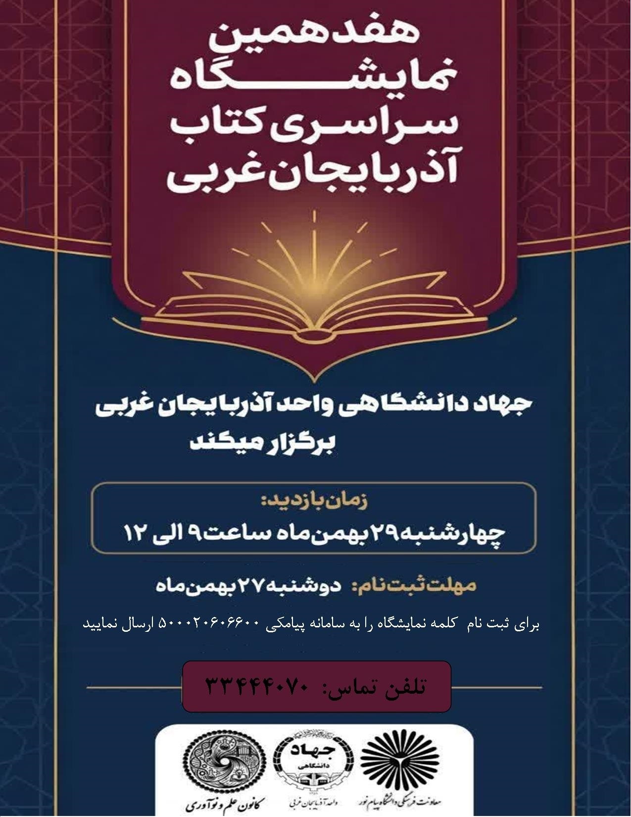 به اطلاع کلیه علاقهمندان به کتاب و کتابخوانی میرساند، اردوی بازدید از هفدهمین نمایشگاه کتاب ارومیه به شرح زیر برگزار خواهد شد: