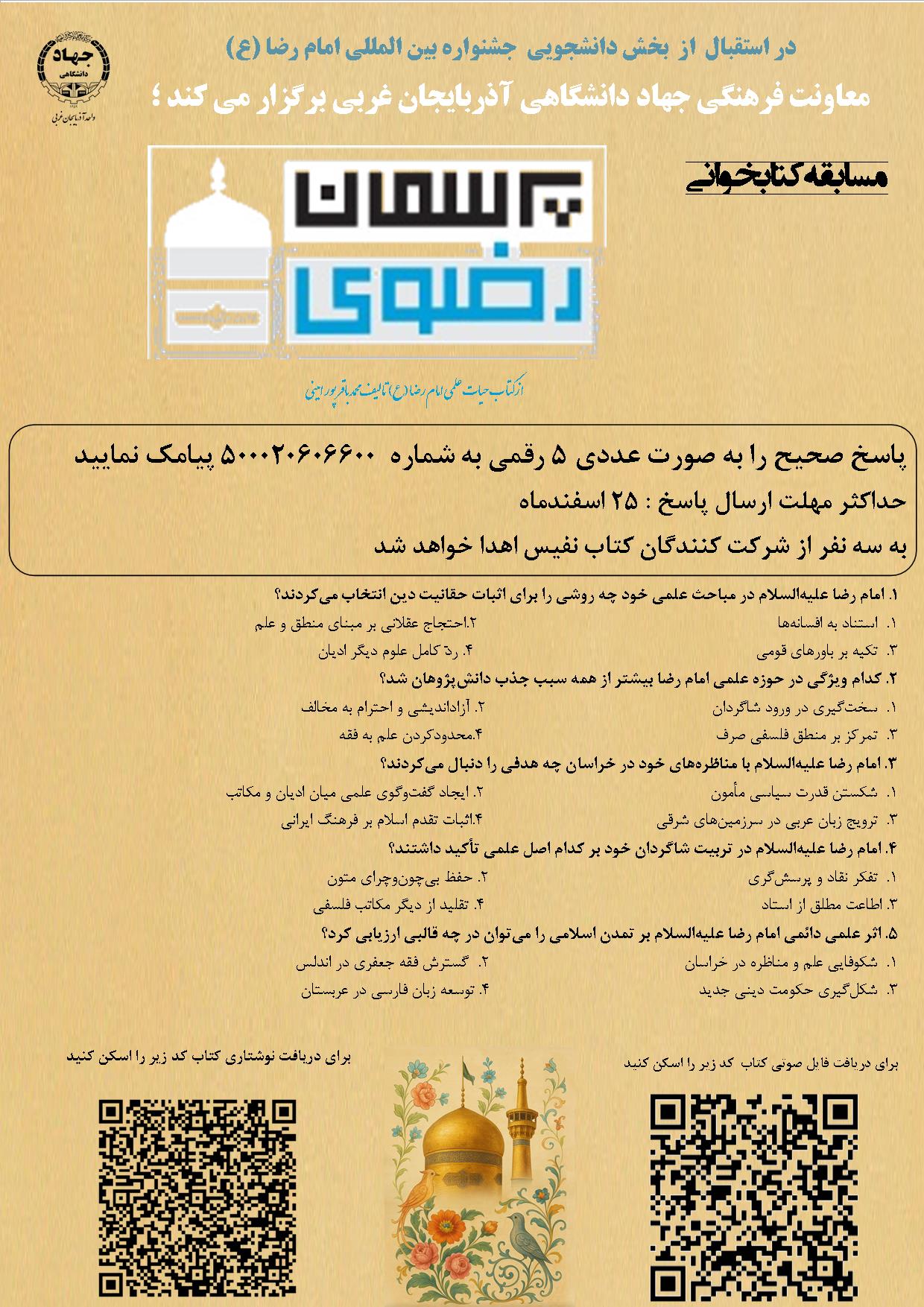 کتاب نفیس پرسمان رضوی اهدا خواهد شد.