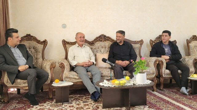 بعد از سلام و احوالپرسی روی مبل روبروی او جای گرفتیم. لبخند همچنان بر روی لبانش بود و به گرمی با ما احوالپرسی میکرد. خانمش اما محجوب و خجالتی در گوشهای از پذیرایی دقیقاً دم آشپزخانه نشسته بود و ما را تماشا میکرد.