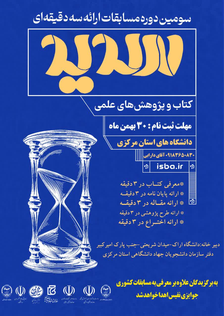 سومین دوره طرح ملی سدید دفاع سه دقیقه ای به همت سازمان نشر و ترویج مطالعه جهاد دانشگاهی استان مرکزی در در 5 محور معرفی کتاب در سه دقیقه