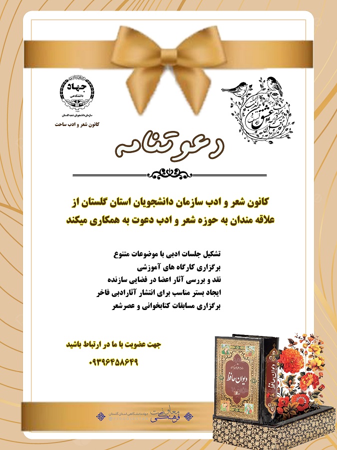 درباره دعوت به همکاری در کانون شعر و ادب ساحت ویژه دانشجویان استان گلستان