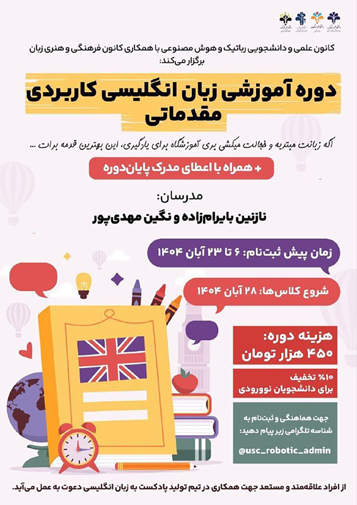 کانون علمی و دانشجویی رباتیک و هوش مصنوعی با همکاری کانون فرهنگی و هنری زبان برگزار میکند :