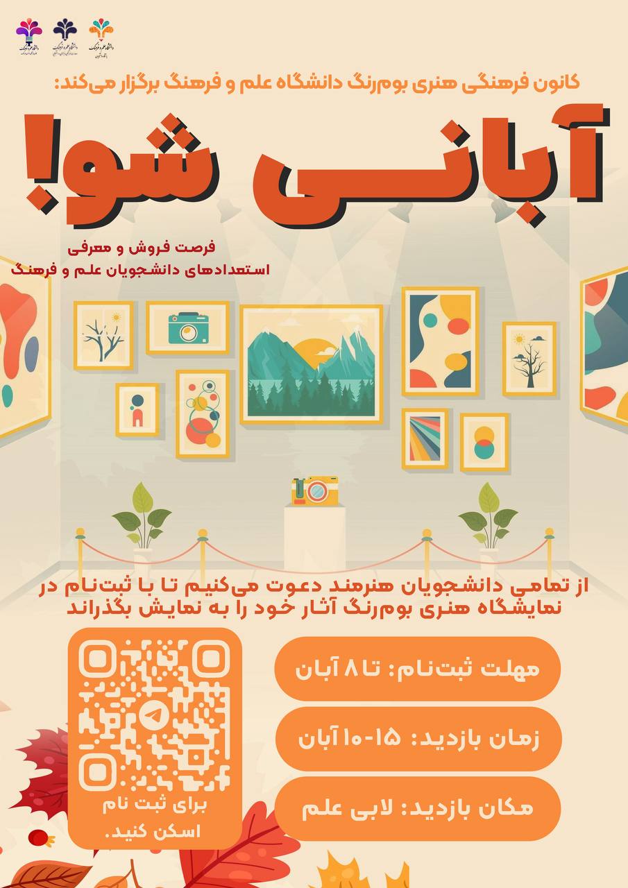 نمایشگاه هنری «آبانی شو»، فرصتی برای نمایش، فروش و معرفی آثار هنری دانشجویان مستعد دانشگاه.