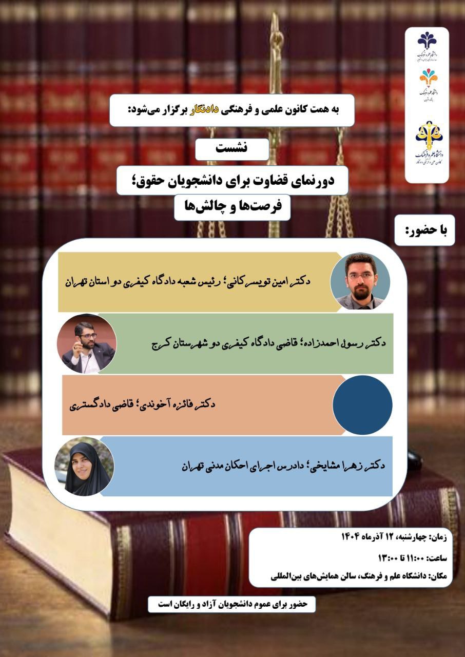 نشست "دورنمای قضاوت برای دانشجویان حقوق؛ فرصتها و چالشها"